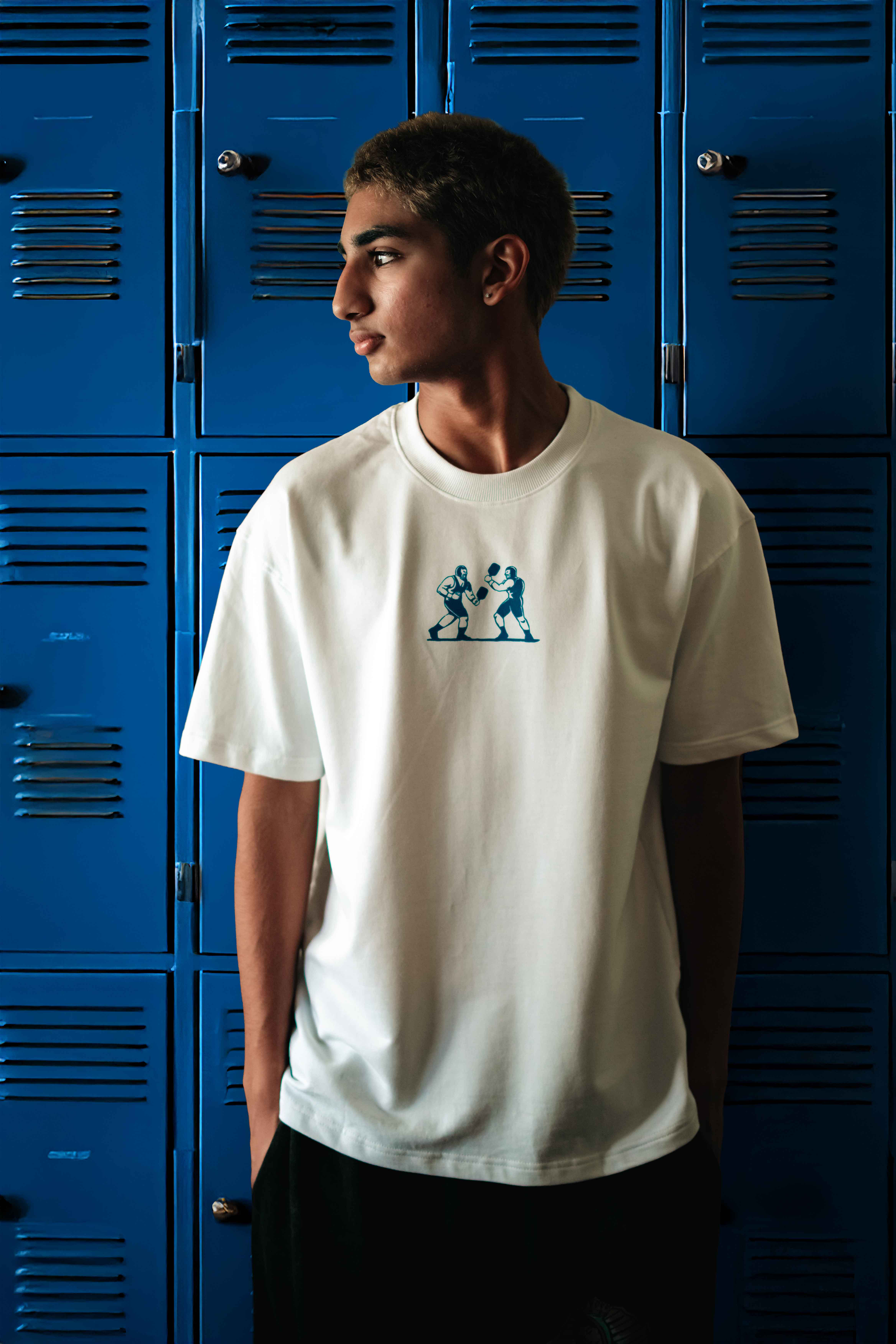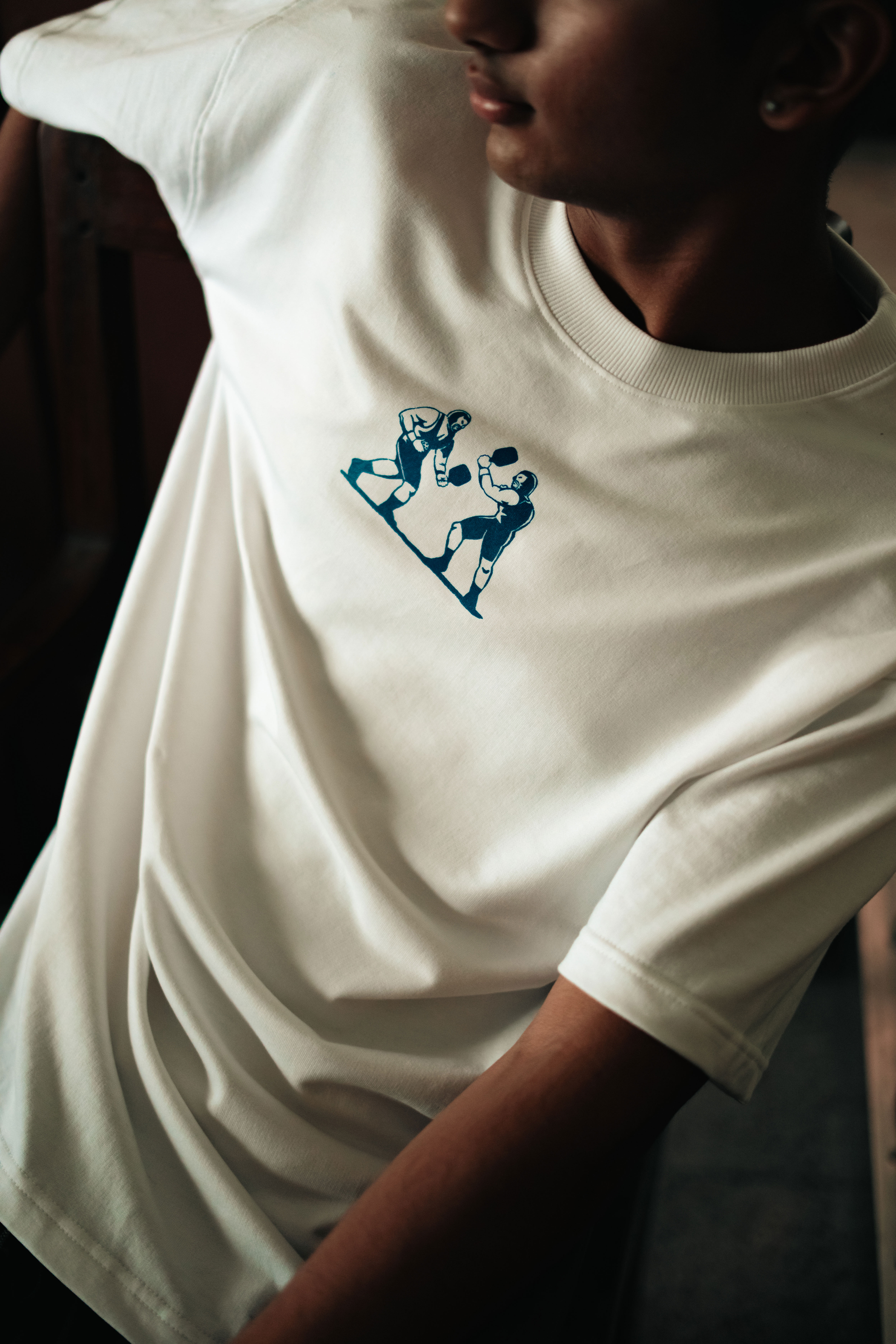 Oversized T-shirt in heavyweight 240 GSM French terry cotton, cut in the signature Panic Press silhouette. Designed with a ribbed neckline, dropped shoulders and a clean, straight-cut hem. Featuring dual side graphics. Built for structure, comfort and the kind of weight that holds steady—on and off the court.